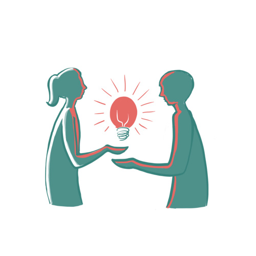 Ich bekam den Auftrag zu den oben genannten Bereichen für Website und Flyer einfache Illustrationen zu gestalten. Beim Stil entschieden wir uns für einen digitalen Ansatz, der die Schwere aus dem Thema herausnimmt und die konstruktive Haltung wie einfühlsame Begleitung durch Lukas Wagner und Lene Lantos wiederspiegelt.