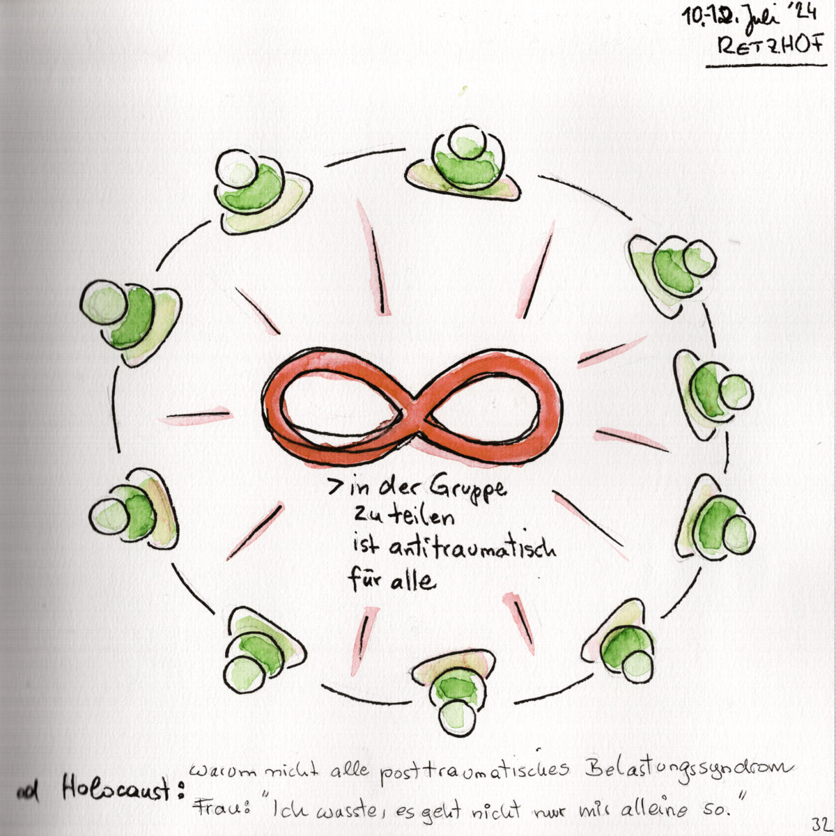 Anhand eines Handouts konnte ich schon vor dem Seminar einige grundlegende Konzepte veranschaulichen und schon bei Beginn den Teilnehmer:innen zeigen. Während und nach dem Seminar habe ich versucht die Konzepte und Hintergründe sowie die Anwendungen und Geschichten, die im Seminar dargeboten wurden, anschaulich festzuhalten. Diese dienen als Erinnerungsanker für die Teilnehmer:innen und werden für Lernmaterial und Veröffentlichungen weiterverarbeitet.