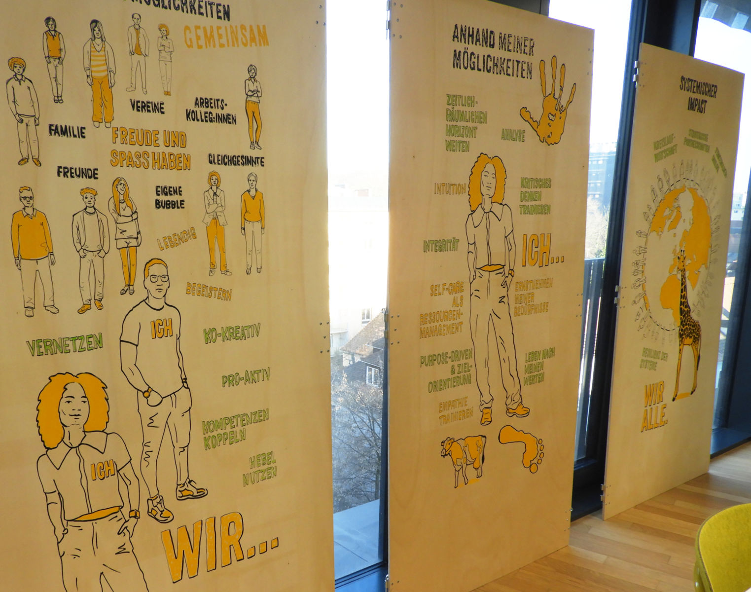 Holz-Paravent zum Thema Handabdruck/Fußabdruck